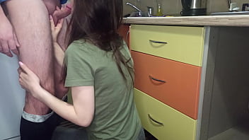 Brunetica cu tatele mici fututa dur pe masa in bucatarie